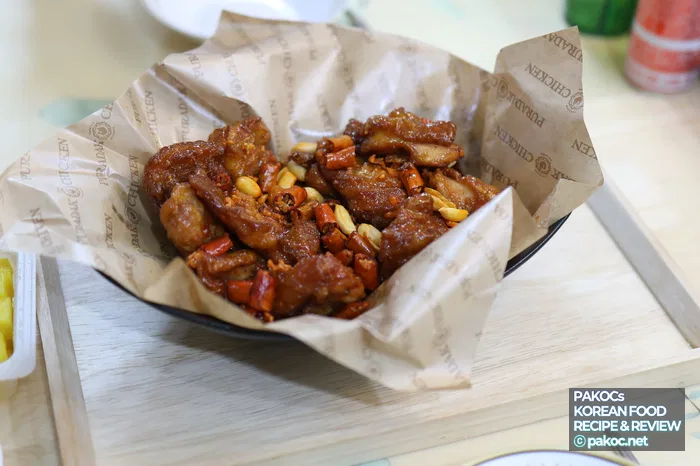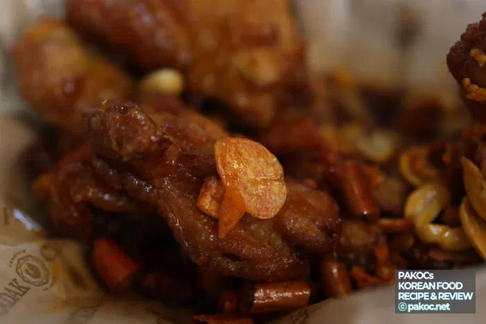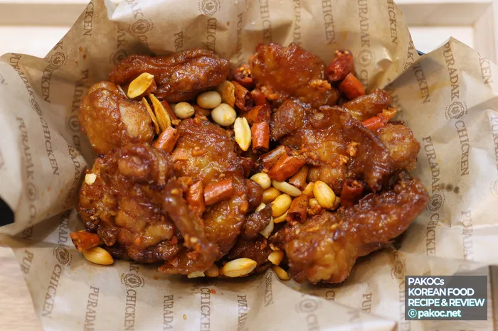 I ordered the boneless menu first! The chicken seems to be mixed with enough sauce once. And true to ‘Puradak’, they generously topped it with Vietnamese dried chili, peanuts, and sliced garlic fries!