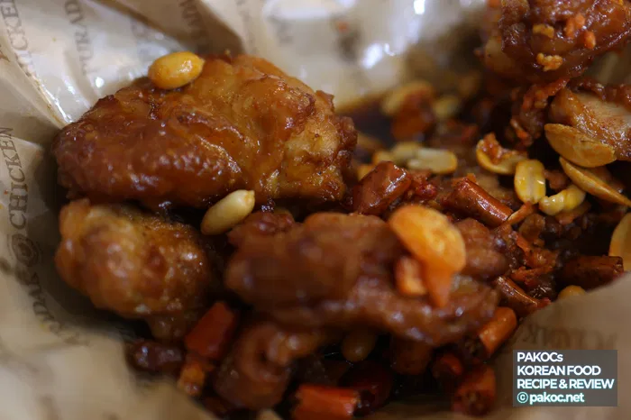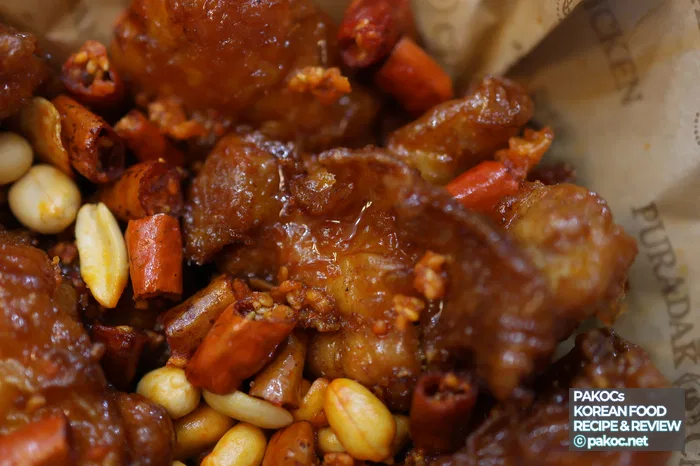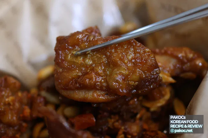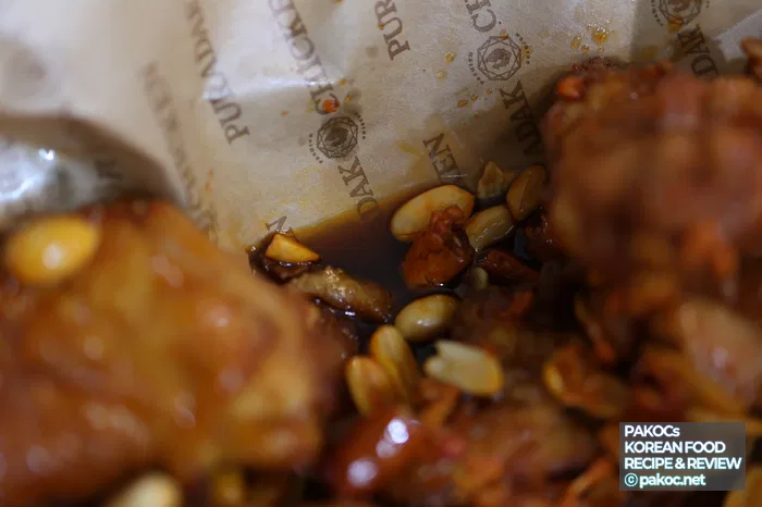 Copyright PAKOC https://pakoc.netThe peanuts are somewhat edible, but the dried chili tends to have a slightly bitter taste. The one I ordered had quite a generous amount of sauce, and as you go further down, the chicken gets soaked in the sauce, making the taste come through more strongly.